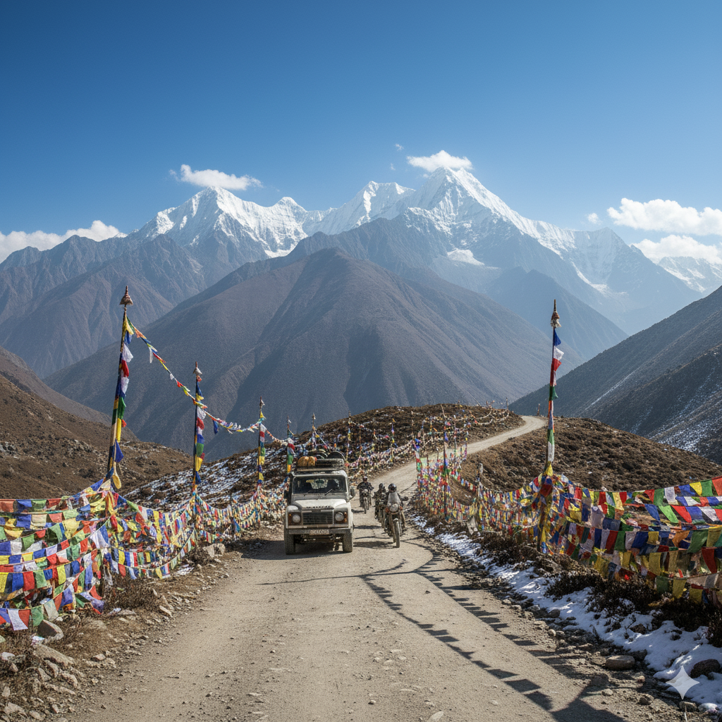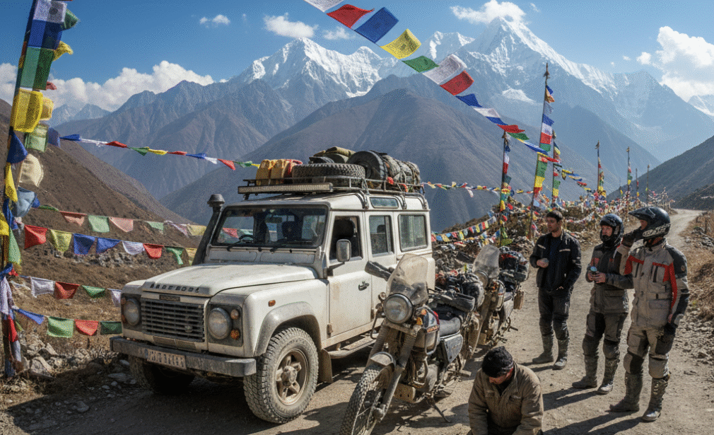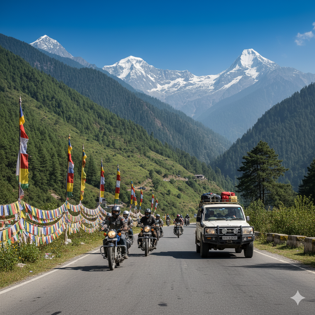 Backup 4×4 vehicle assistance for motorcycle tours in Bhutan. Support cars carry spares, luggage, refreshments, and first-aid while ensuring safety during emergencies. Essential support service for safe and reliable Bhutan motorbike adventures.