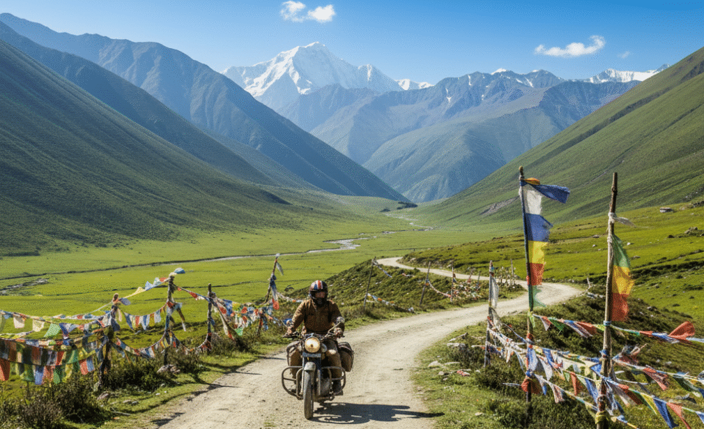 Custom and private motorcycle tours in Bhutan tailored for riders seeking exclusive Royal Enfield adventures. Build your own Bhutan itinerary with licensed road captains, on-route mechanics, backup 4×4 support, permits, and hotel arrangements. Ideal for private groups, couples, and experienced riders wanting bespoke Bhutan motorcycle trips.