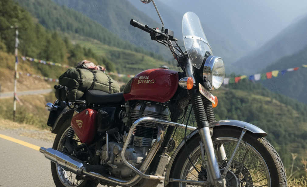 Royal Enfield bike rentals in Bhutan with Classic 500cc and Himalayan 411cc motorcycles. Reliable, fully serviced bikes available for daily, weekly, or long-term hire. Includes helmets, toolkits, and safety checks. Perfect for riders wanting independent Bhutan motorcycle adventures.